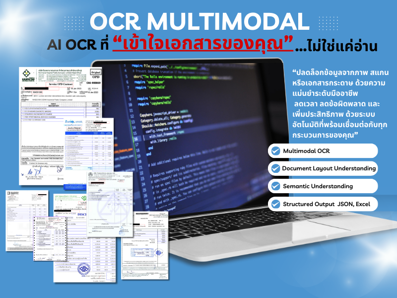 OCR (Optical Character Recognition) ของเรารองรับทั้งเอกสารสแกน, PDF, และรูปภาพ พร้อมเข้าใจภาษาไทย–อังกฤษอย่างแม่นยำ รวมถึงอ่านตาราง กล่องข้อความ และโครงสร้างเอกสารได้ครบถ้วน เหมาะสำหรับการจัดเก็บและดึงข้อมูลไปใช้งานต่อ