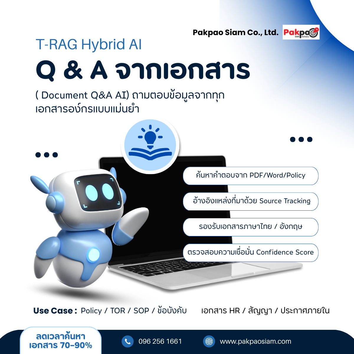 ด้วยการผสาน Proprietary LLM, T-RAG และ Agentic AI Pakpao Siam ช่วยให้องค์กรของคุณ: