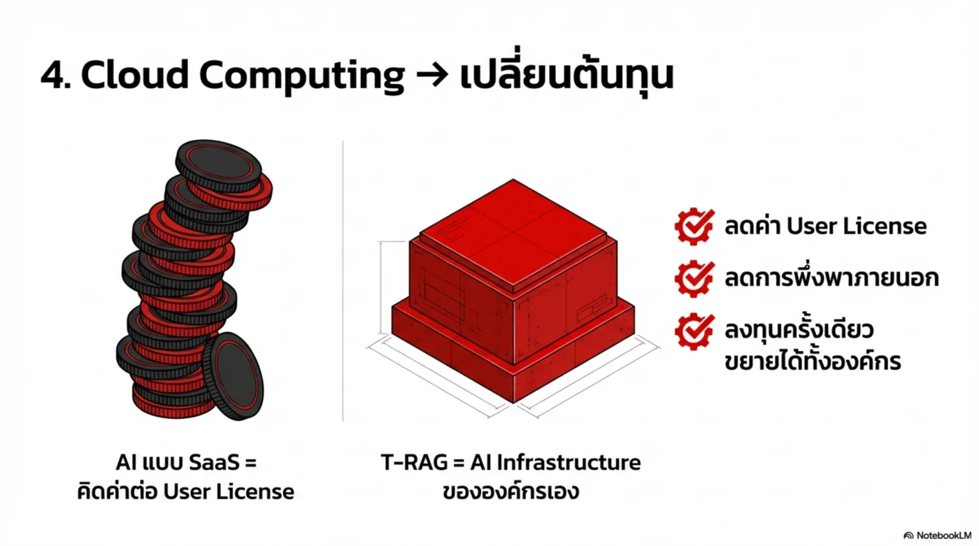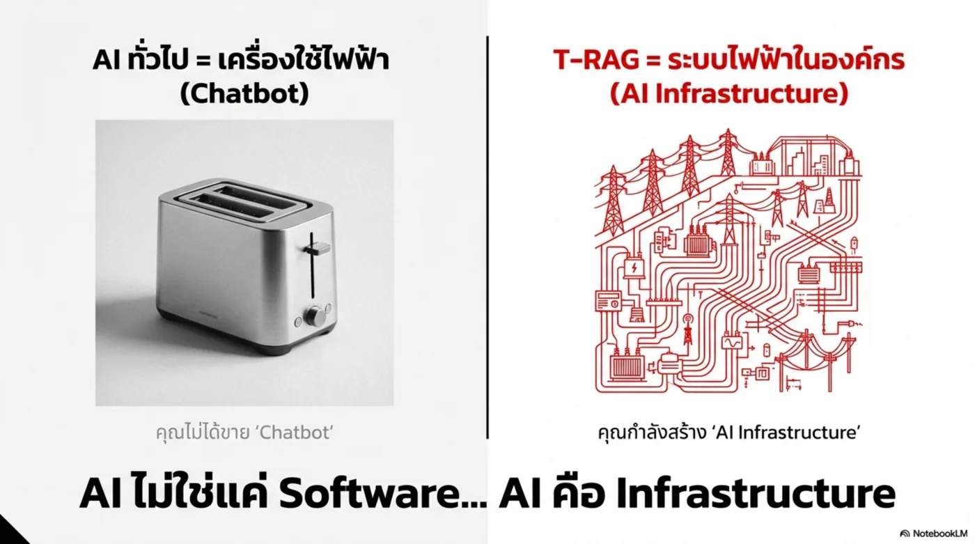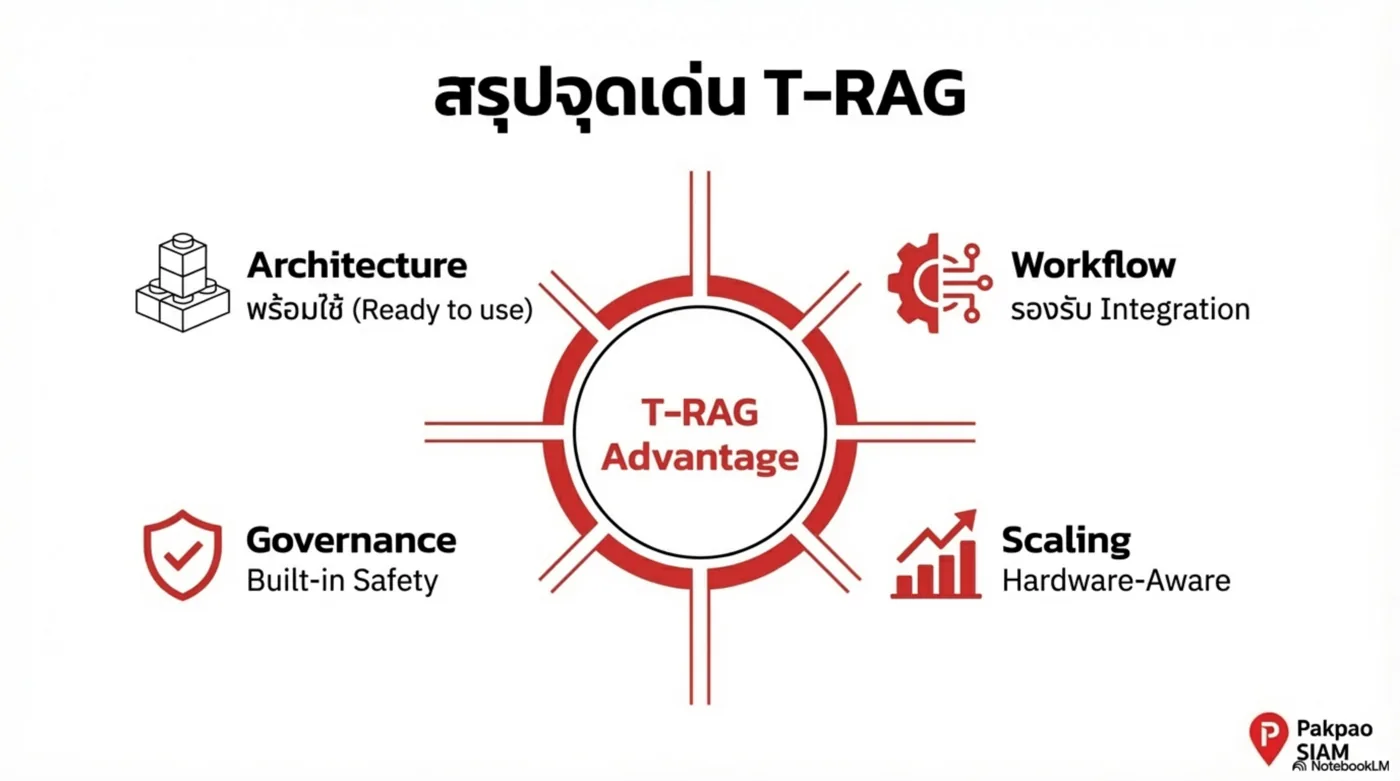 T-RAG Enterprise AI Infrastructure คือแพลตฟอร์มที่ทำให้องค์กร “เชื่อมความรู้–เข้าใจเอกสาร–ตัดสินใจได้” แบบองค์กรจริง: มี Governance, Auditability, และตัวเลือกติดตั้ง (On-Prem / Private Cloud / Cloud) ตามนโยบายข้อมูล